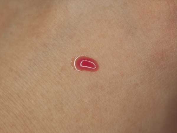 Here’s what the product looks like out of the tube. It gives off this amazing cherry candy scent that reminds me of those little jelly cups I used to eat as a kid. You know, the ones you had to suck out, but this being a skill with which not every kid was gifted!
