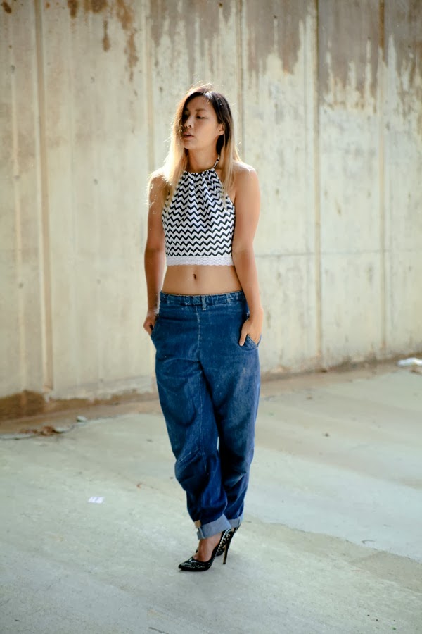 | Those of you who grew up in the 90’s like me – the age of the Spears-Aguilera sports bra and sweat pant ‘teenie bopper’ uniform – will know what I’m talking about when I say: under-boobage and upper-gina are not midriff! Now I love the cropped length, but the dilemma for us (the victims of 90’s ‘midriff backlash’) is: to bare, or not to bare. If it’s done in the style of Lily Collins’ of 2013–or for that matter, my girl, The Luxuriante-then I don’t care how many people see my freakishly long belly button (don’t look now!). This too cute for words zigzag crop top is from Pemba Boutique, where else? Surely the tongue in cheek fun-ness and infinite wearability are telltale signs. Stripes, spots and flowers have been ‘the shiz’ for, like, ever, but I think it’s about time zigzag got the kudos it deserves – it’s a classic, and it kind of make you feel like you’re looking at one of those optical illusion puzzles. Woah! For me this cool tie back halter top could take me from pool side to clubbing. I’ll be upfront and admit that I do very little of either of the above, but, hey, it’s a free world. You know I’ve never let occasion appropriateness dictate my style choices. On this occasion, however, it’s a pair of super slouchy boyfriend jeans – worn on the hips for a complete 90’s throwback. I’m pretty sure Gwen Stefani has worn this exactly outfit back in the day... Stick around to see how else I’ll be styling this outfit in coming days! Zigzag Halter Top c/o Pemba Boutique \\ French Connection Tuxedo Blazer \\ Vintage Boyfriend Jeans \\ Tony Bianco Studded Heels |